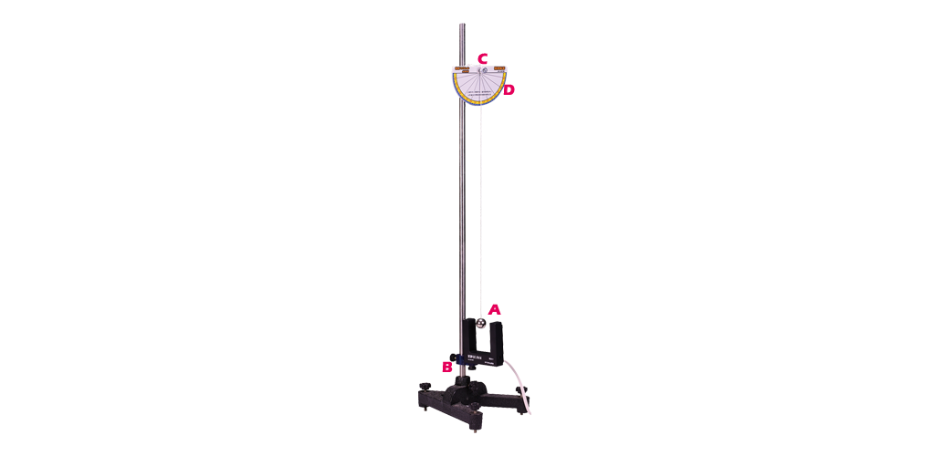 llongwill® Pendulum Apparatus is composed of A. simple pendulum ball set, B. adapter, C. stand support, D. dial fasteners.